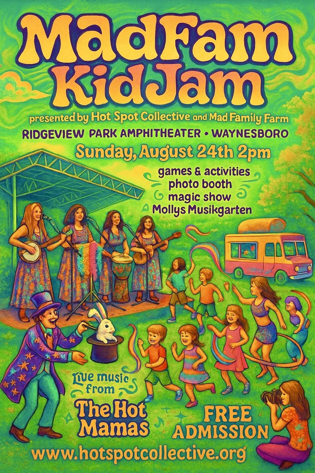 The kid’s are back-to-school so let's celebrate the end of summer with a Sunday Funday at the Ridgeview Park Amphitheater! It's the MadFam KidJam presented by Hot Spot Collective and Mad Family Farm! We'll have lots of fun activities for kids to keep them off their phones, including: